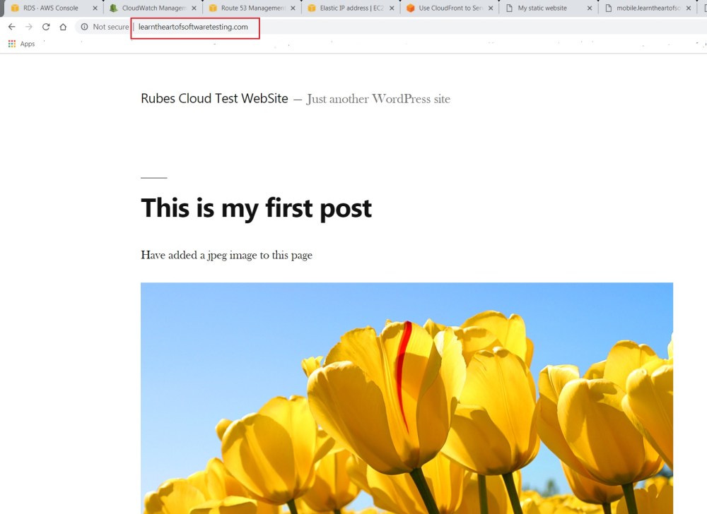 WordPress traffic is routed to “WebServer1-WordPress” which is mapped to http://learntheartofsoftwaretesting.com.