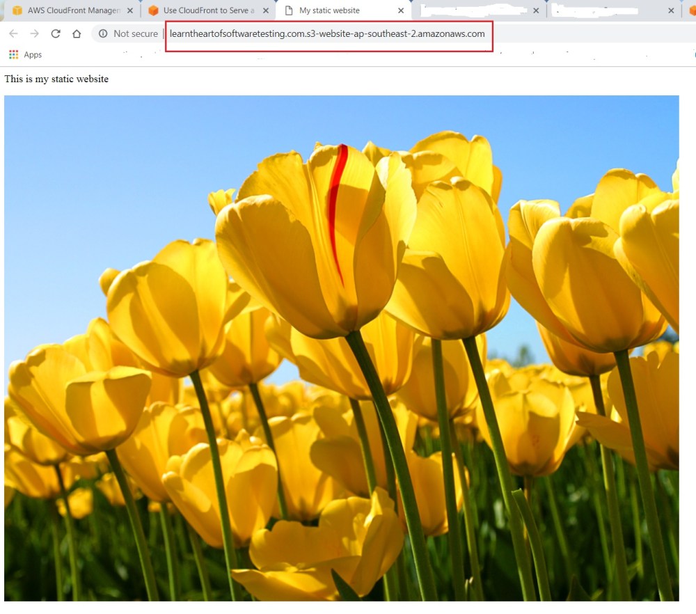 Once the record set is created, it could take 24 – 32 hours before the changes propagate to all the name servers. In our case, if we now type the url: http://learntheartofsoftwaretesting.com, we will see our static website from the s3 bucket. However no one from the public will realize that the website is hosted on a s3 bucket.